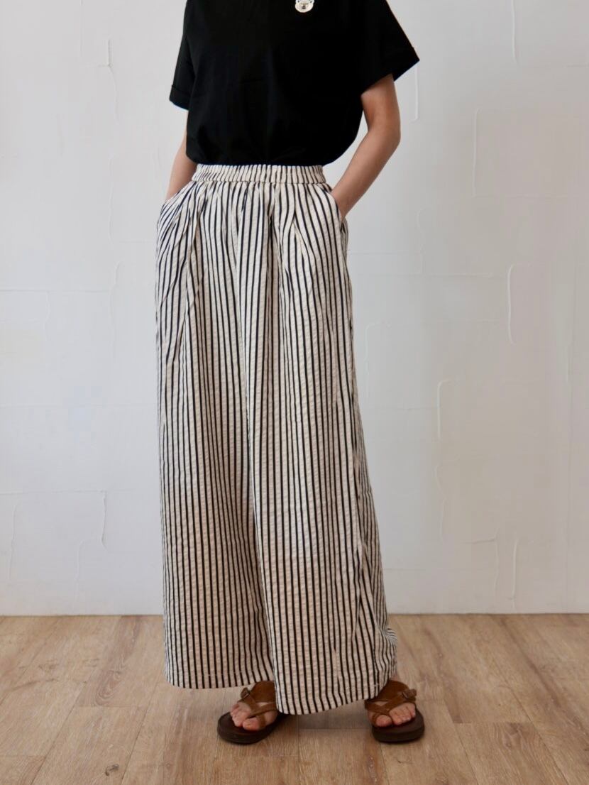 208. .L'ours Polaire et Bleu(ルスポレイル&ブルー) ストライプワイドPT(white/ beige)