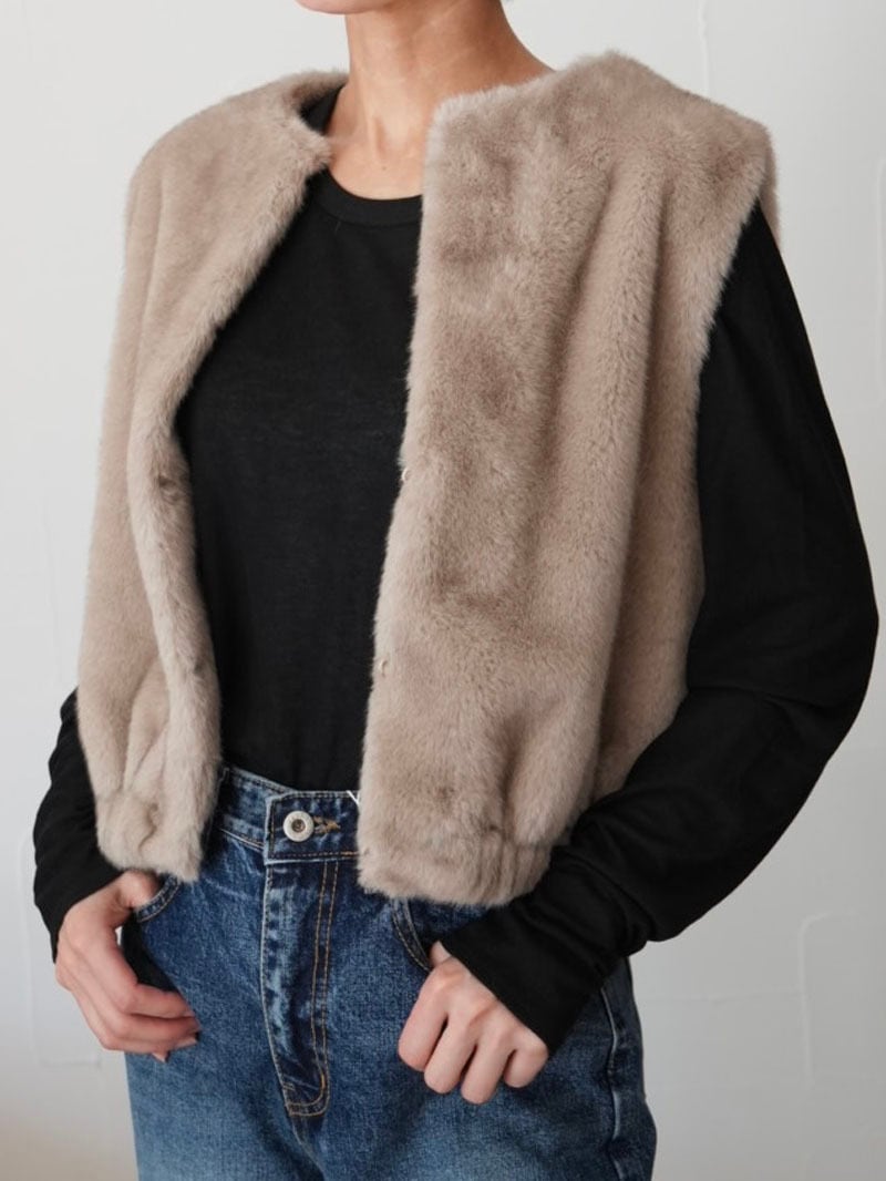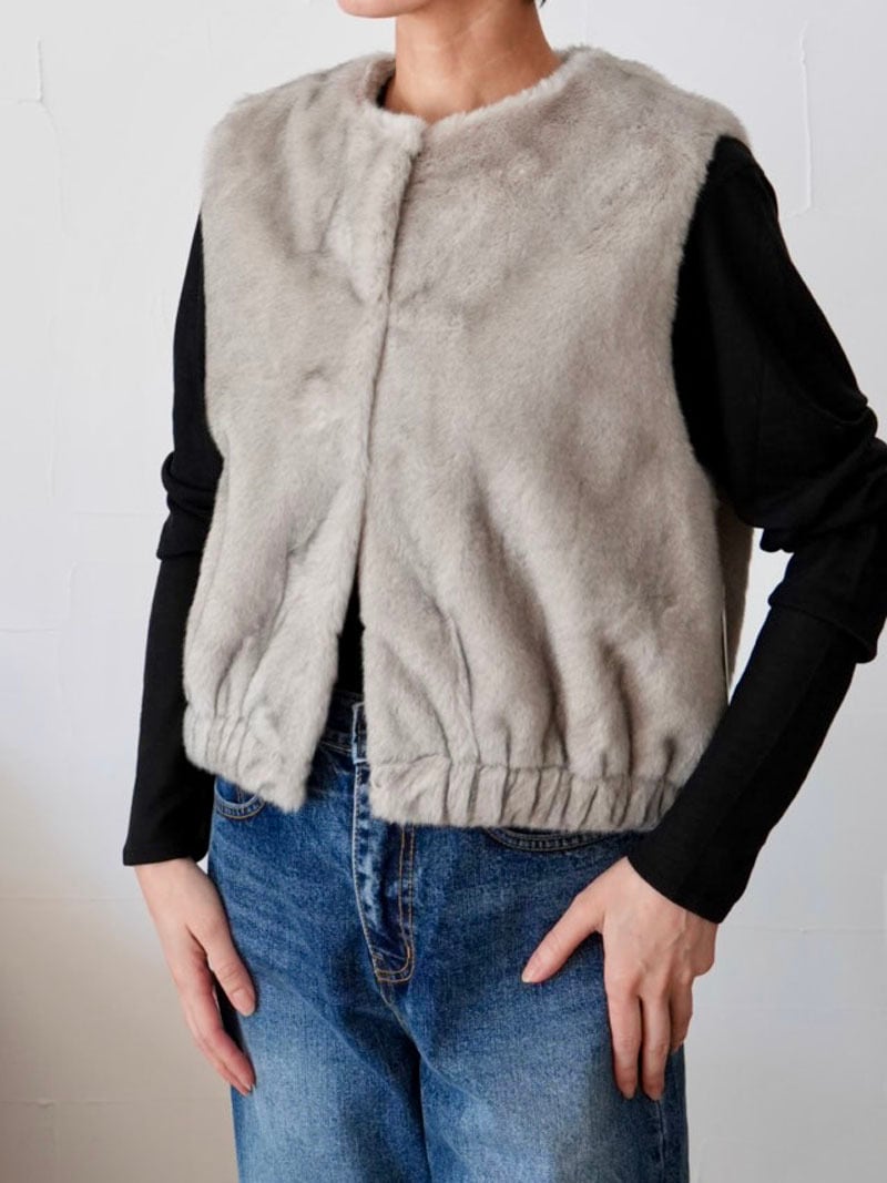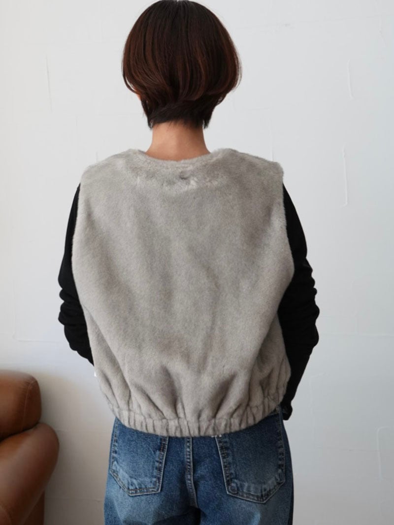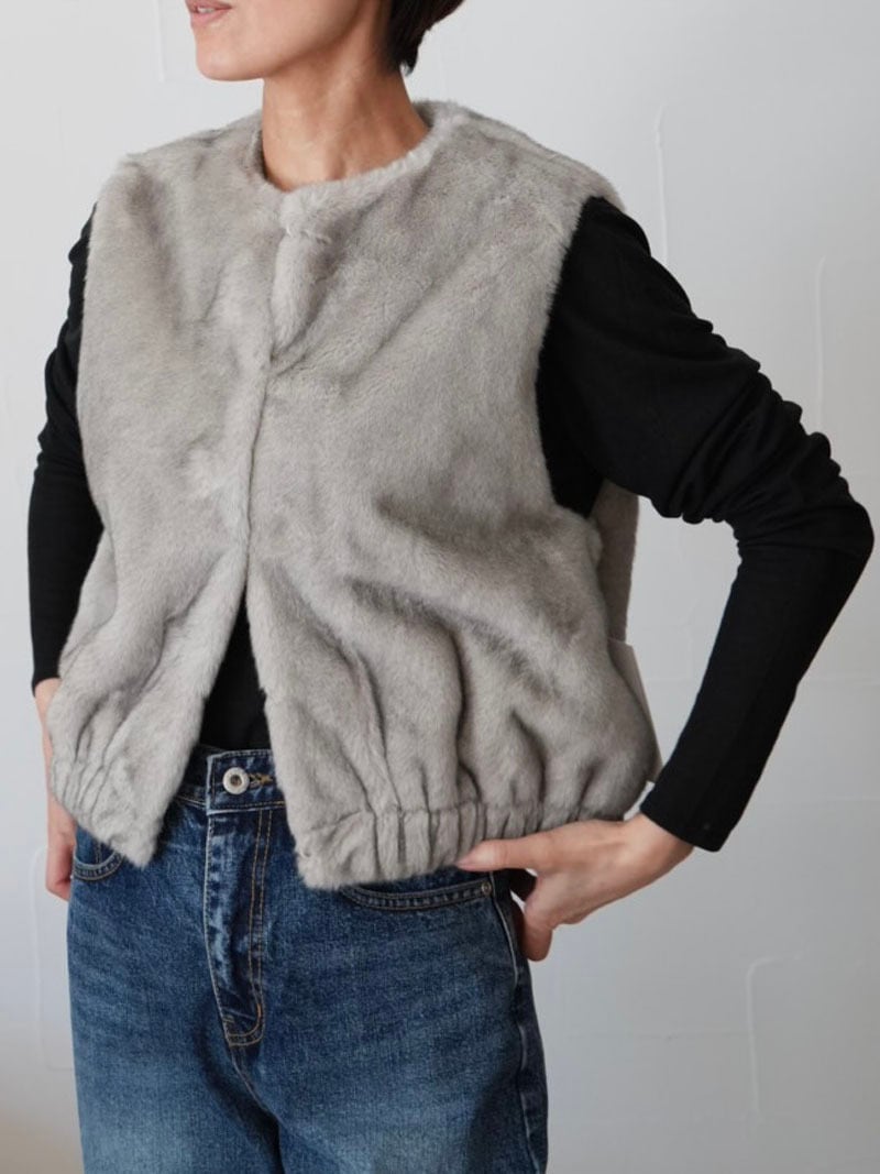 238. passione パシオーネ フェイクファーベスト(beige/gray) (36404)