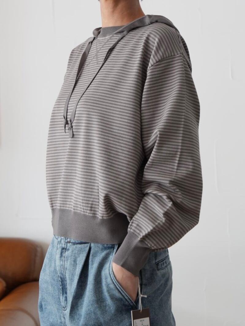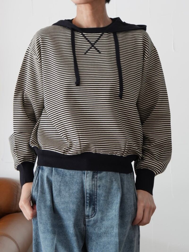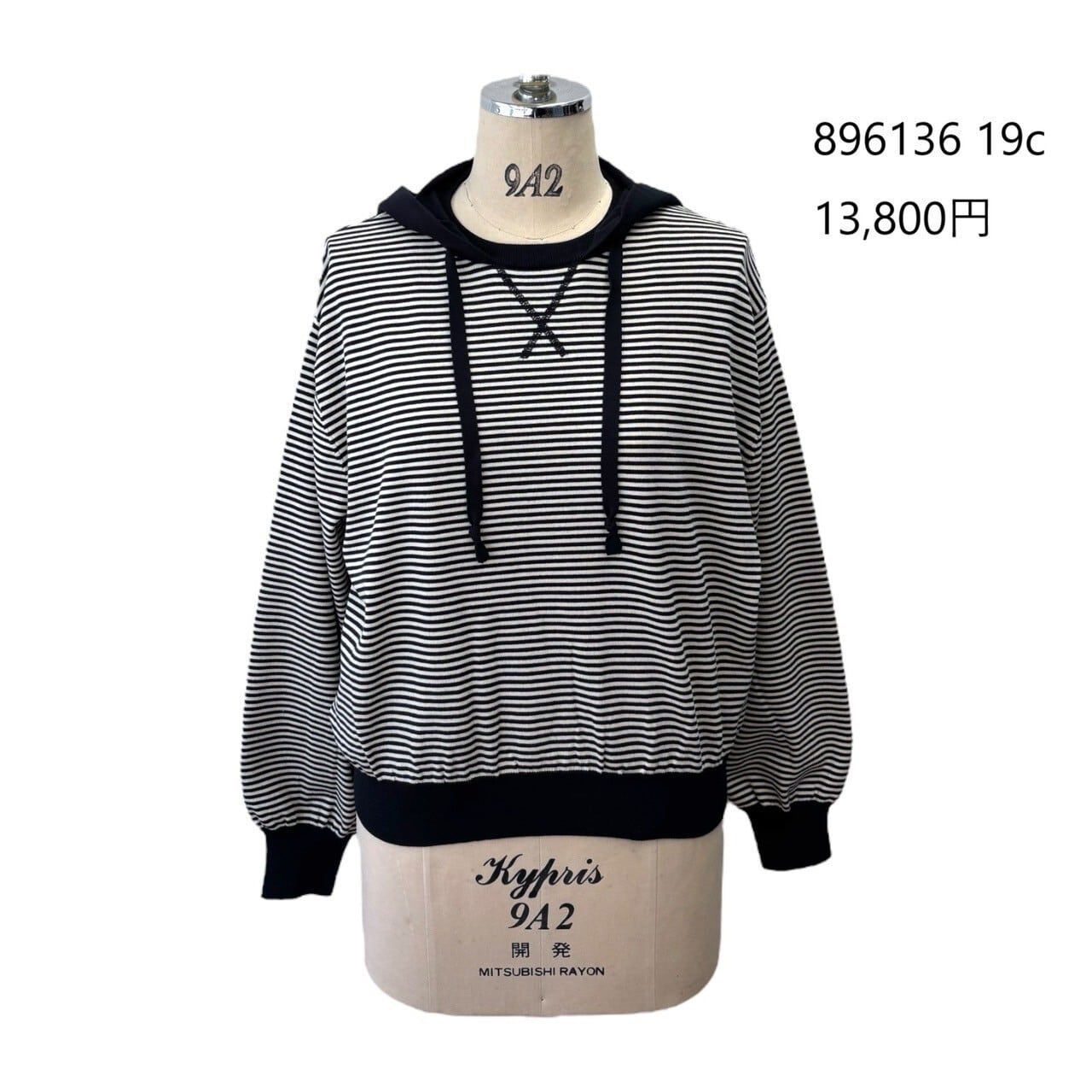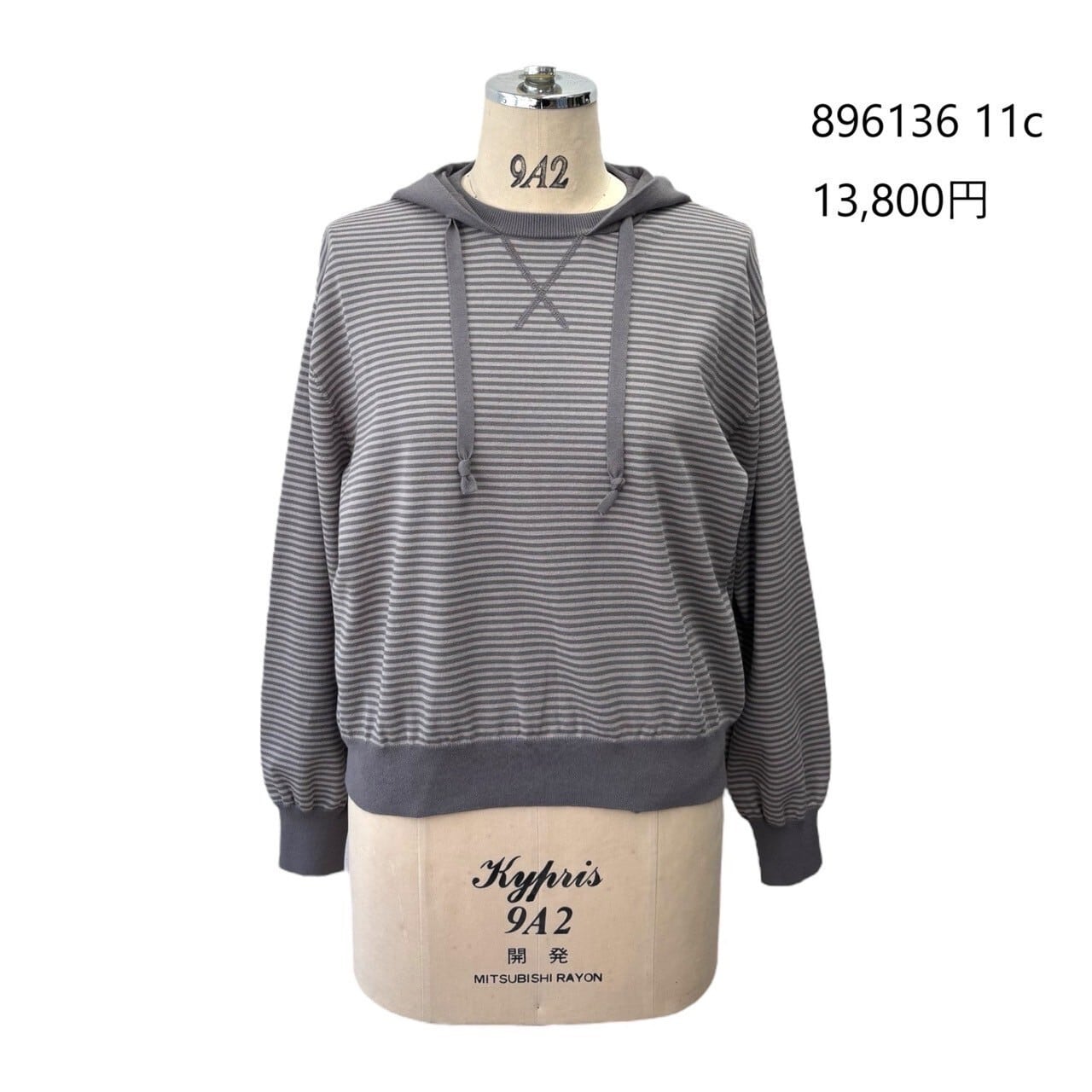 【即納】ayane /アヤン ボーダーフーディニット 896136 (グレー、ネイビー)