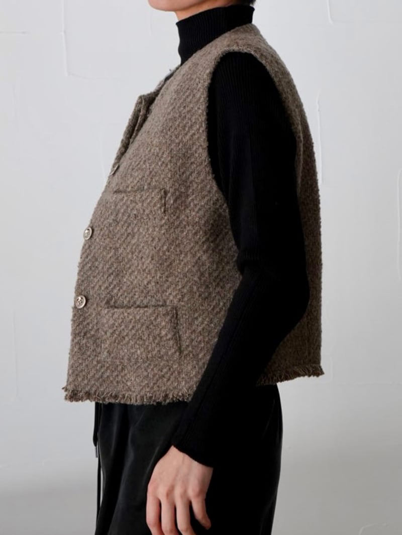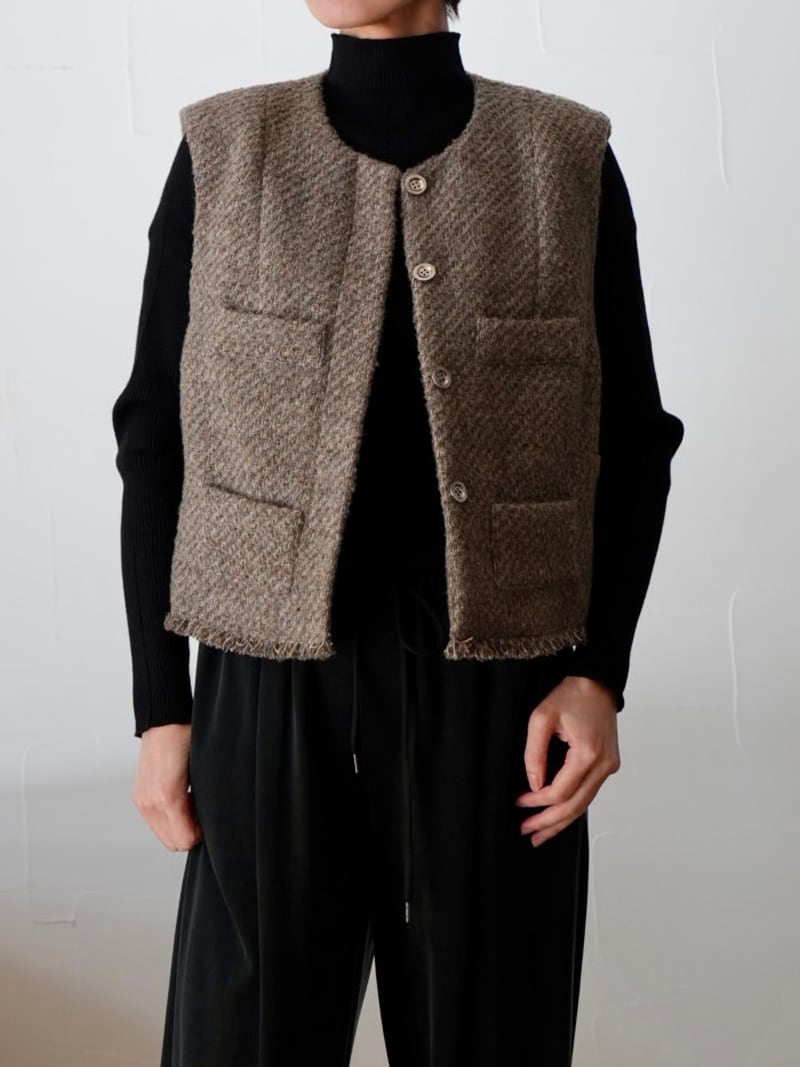 250. cafune /カフネ /ツイードフリンジベスト(beige,brown)(35407)