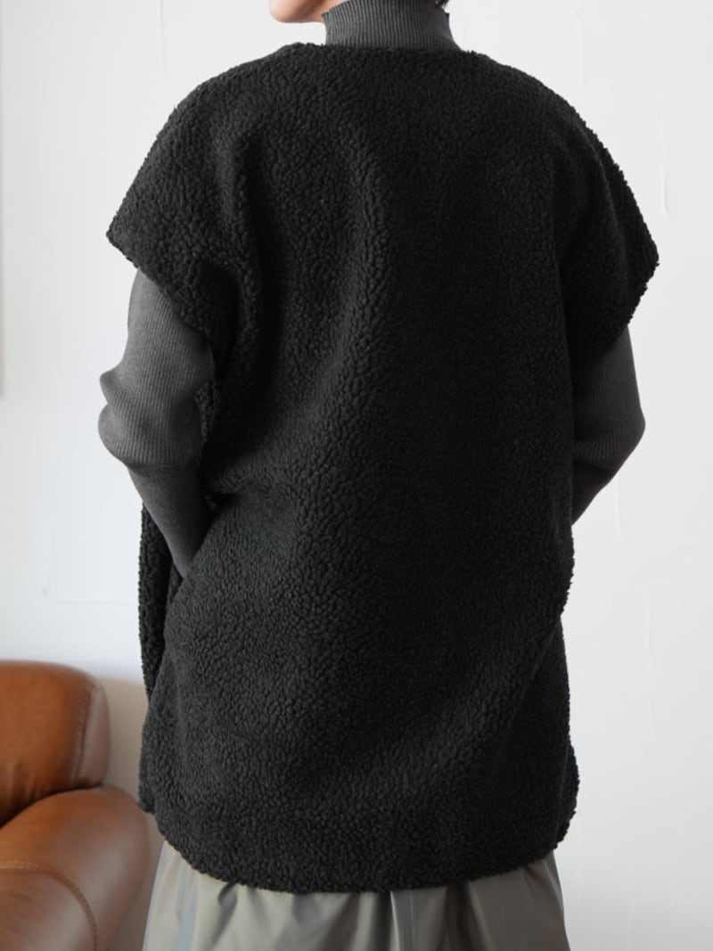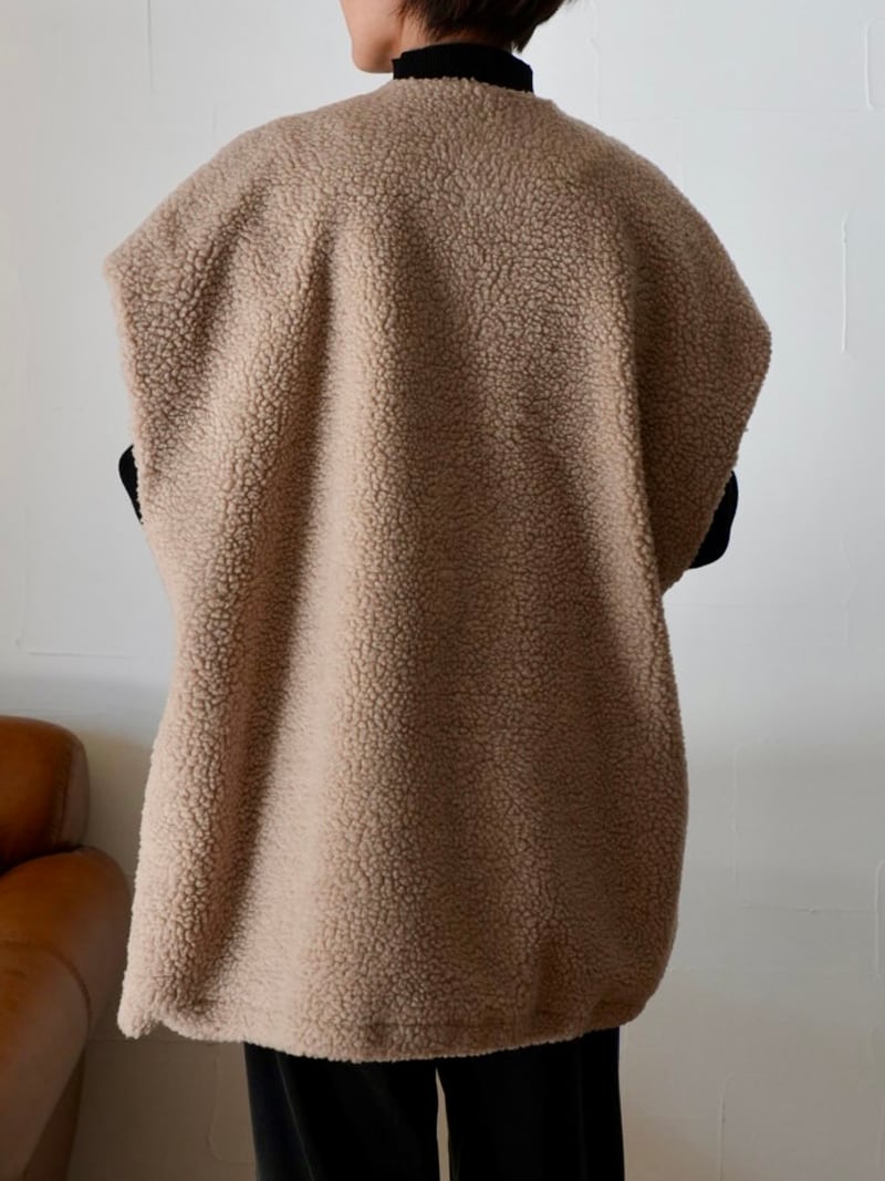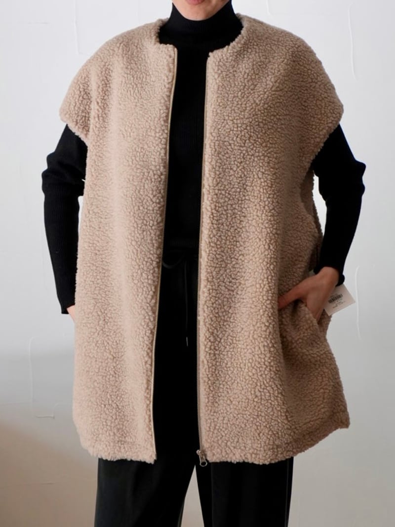252. passione パシオーネ ボアノースリーブジャケット(beige/charcoal) (46412)