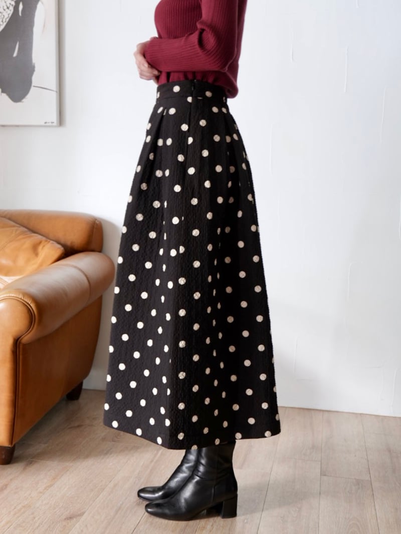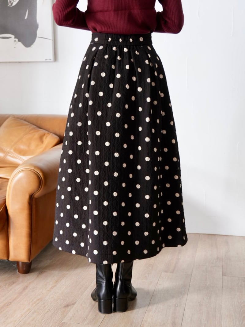 261. CLOCHE クロシェ / 台形スカート(中綿) (ブラック無地/ブラック×アイボリードット) (552-85575)
