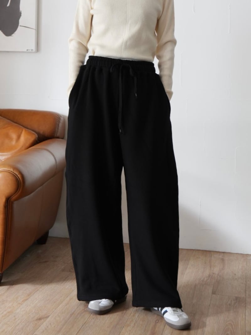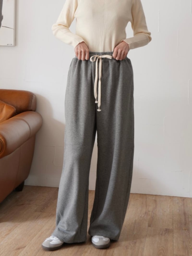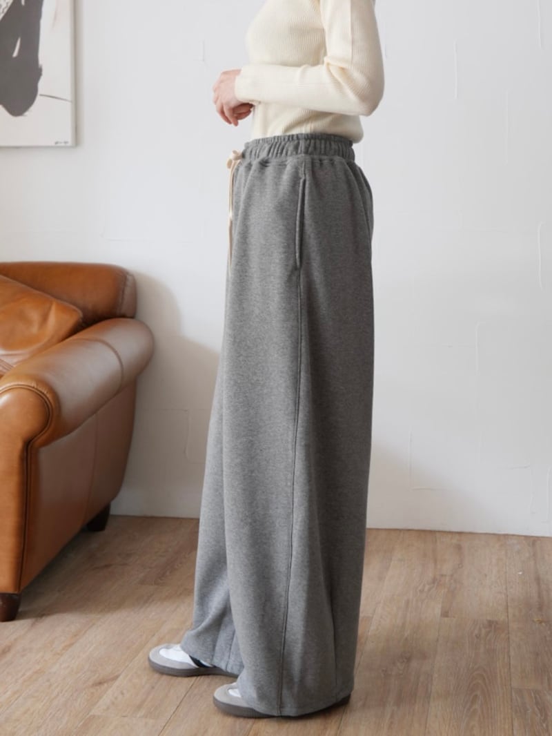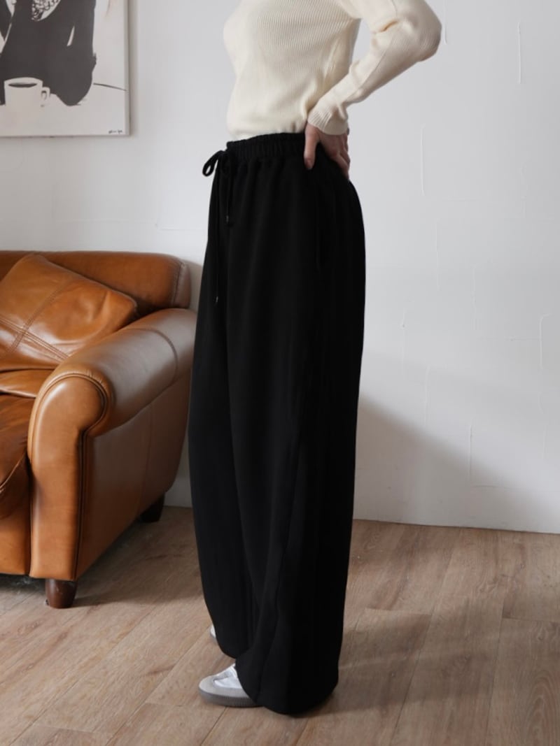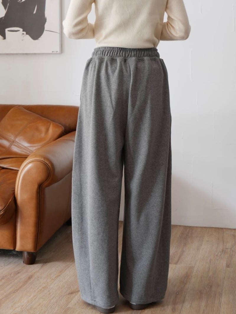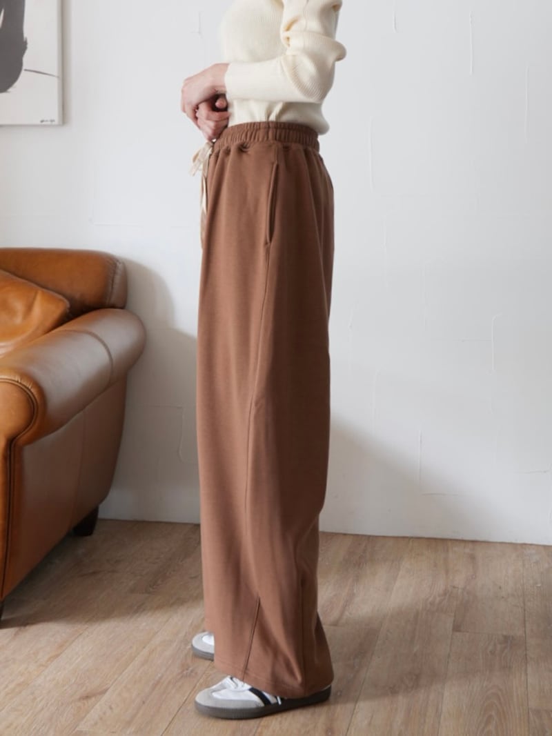 裏起毛生地を使用したカーブシルエットのイージーパンツ。