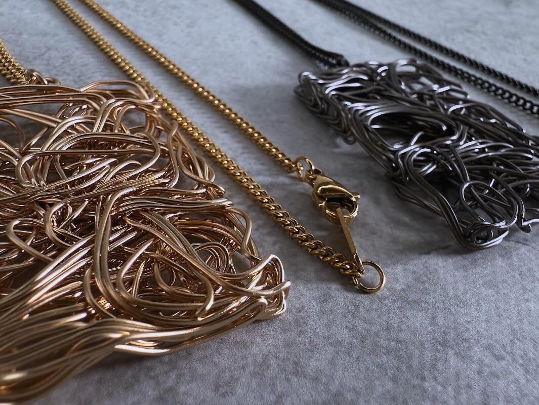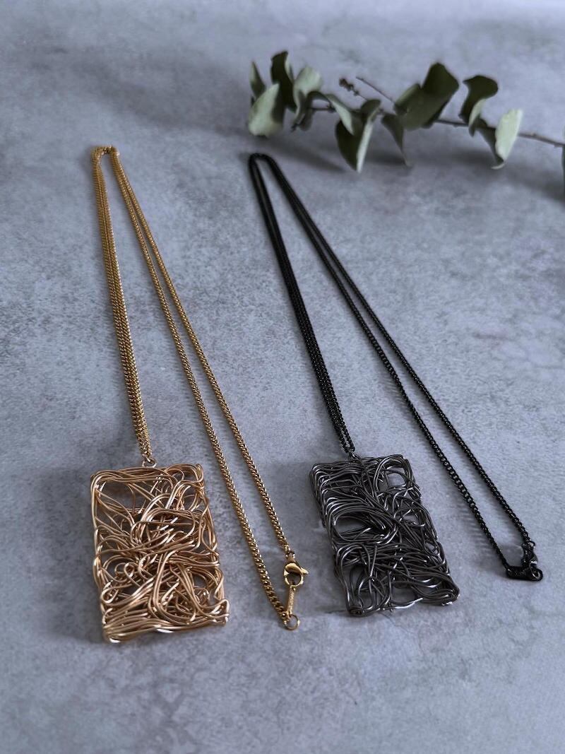 299. ayane /アヤン モダンスクエアネックレス(ゴールド、ブラックチタニウム)(275823)