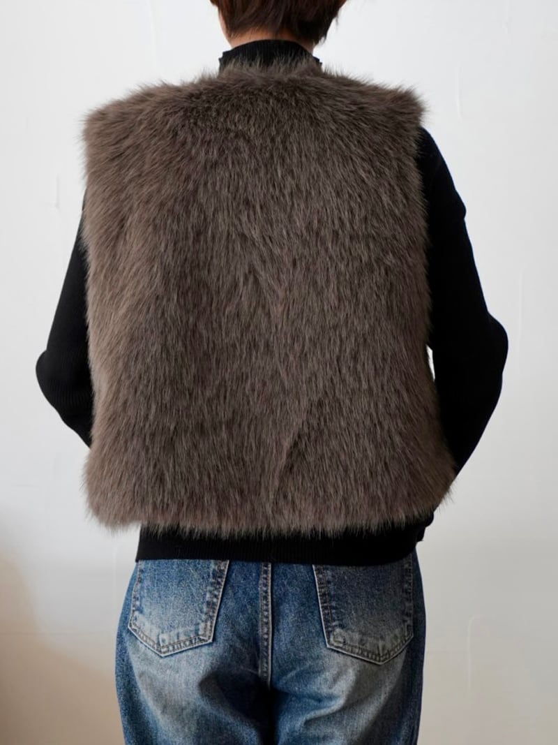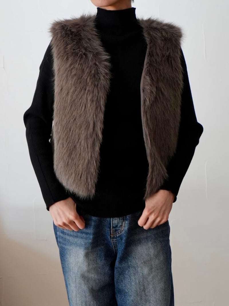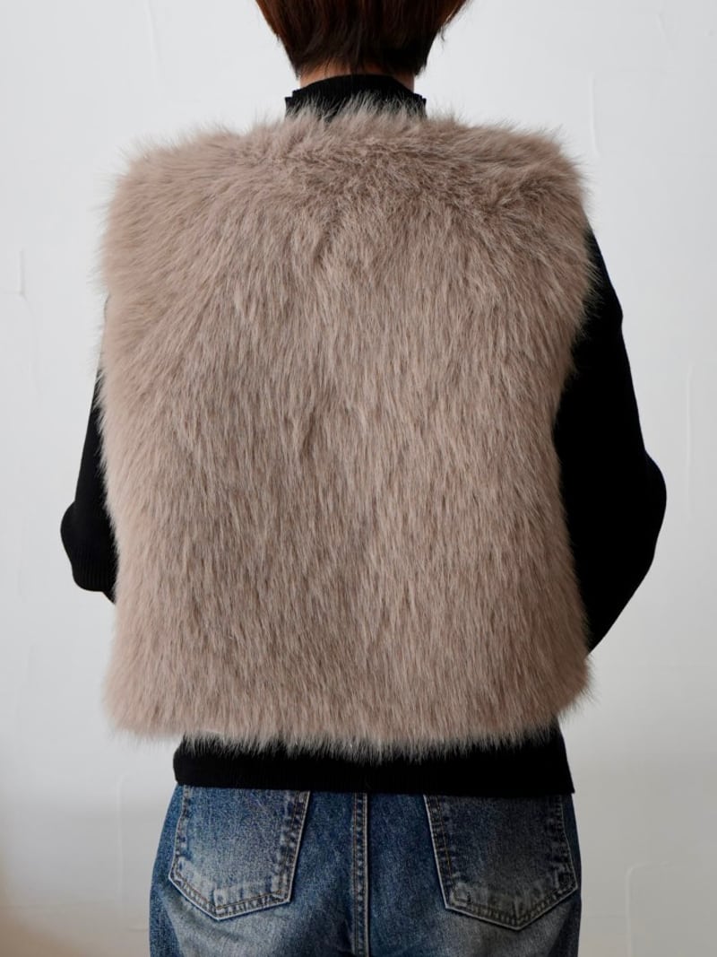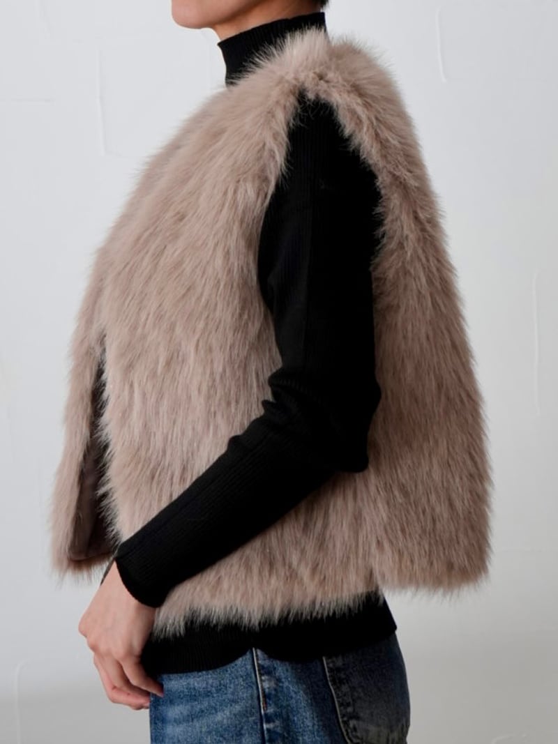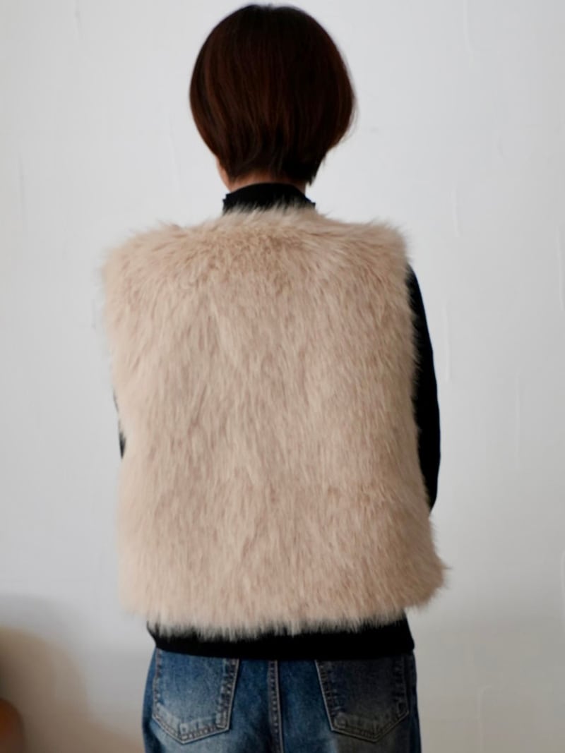 301. TOLNERA/トルネラ ラメ入りフェイクファーベスト(off white、beige、brown) (No.T57145)