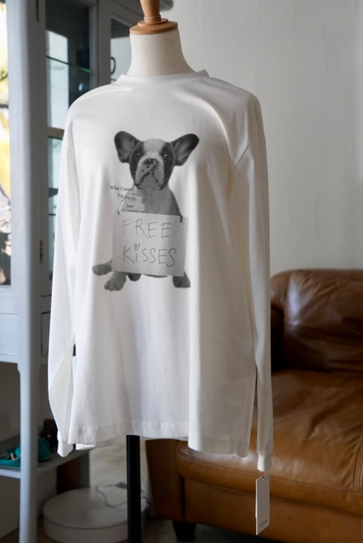 299. passione パシオーネ dogプリントカットソー (チャコール/ホワイト) 536977