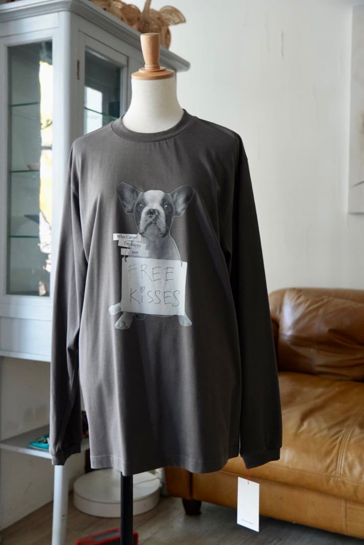 299s.【SALE】passione パシオーネ dogプリントカットソー (チャコール/ホワイト) 536977
