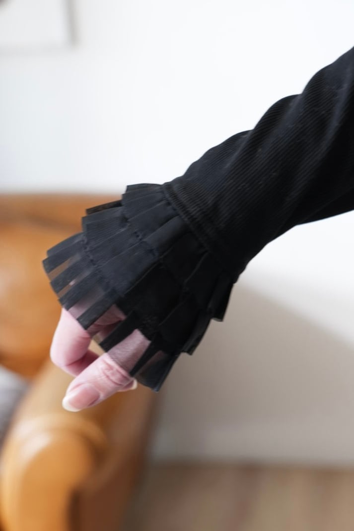 袖口がフリルになっているのでインナーに着用してレイヤードコーデを楽しんでください。