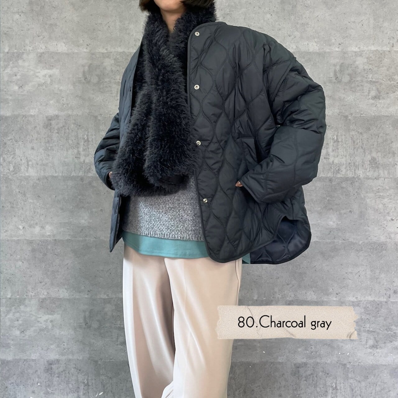 ①中綿ハーフコート(オフホワイト/ブラウン/チャコールグレー)