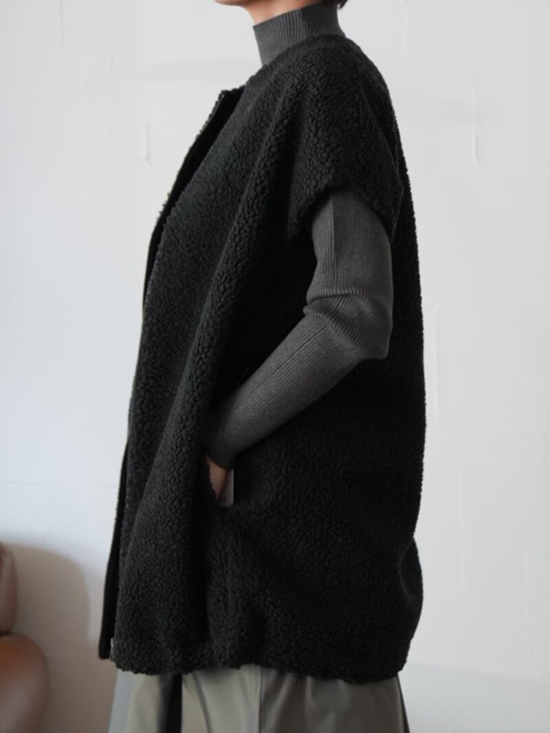 【SALE】252s. passione パシオーネ ボアノースリーブジャケット(beige/charcoal) (46412)
