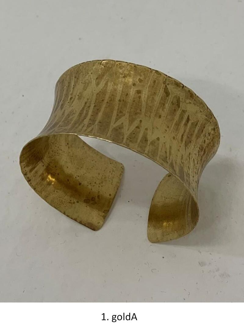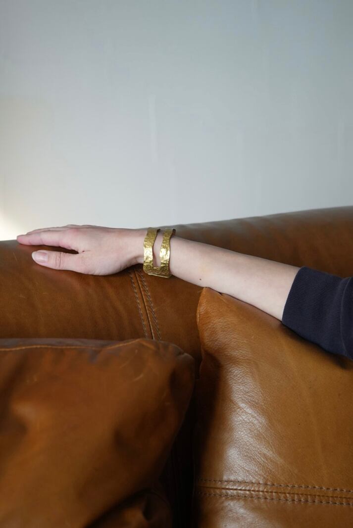 槌目(つちめ)模様やアンティーク調の風合いが、ハンドクラフトならではの温かみを感じさせるバングル。