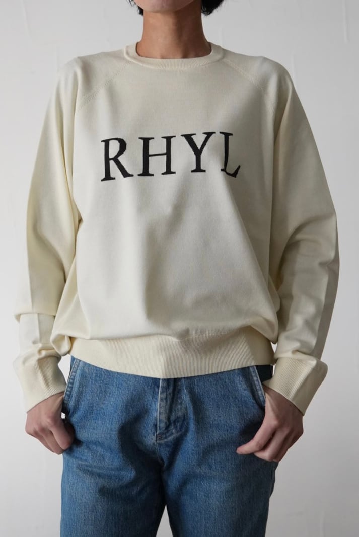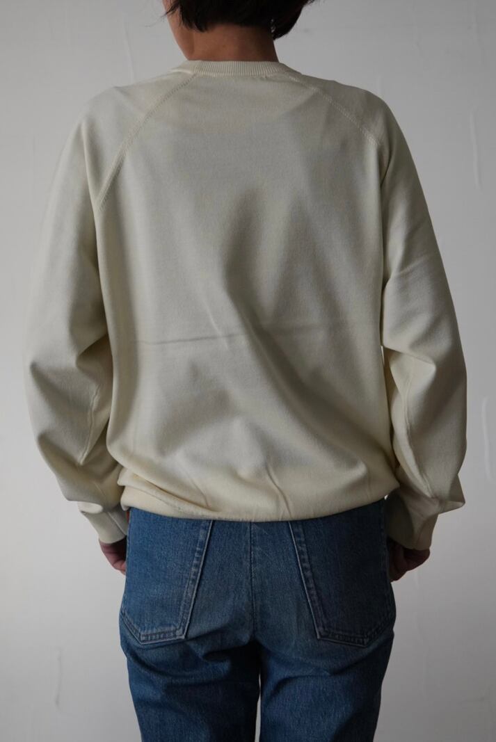 定番人気のラグラン袖のロゴニットトップスです。前裾のみカーブしたデザインで、着用されると少し立体感の出るシルエットに。