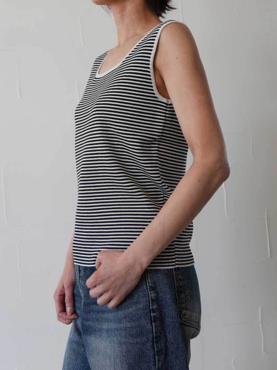 327. CLOCHE クロシェ / スクエアネックニットタンク-ボーダー柄-(オフ×ブルー/グレー/ブラック) (612-85521)
