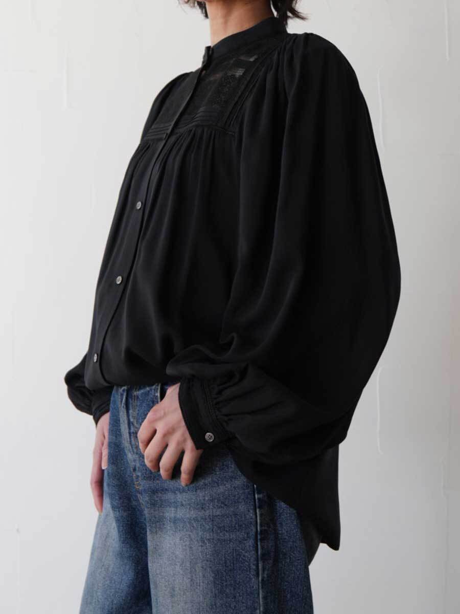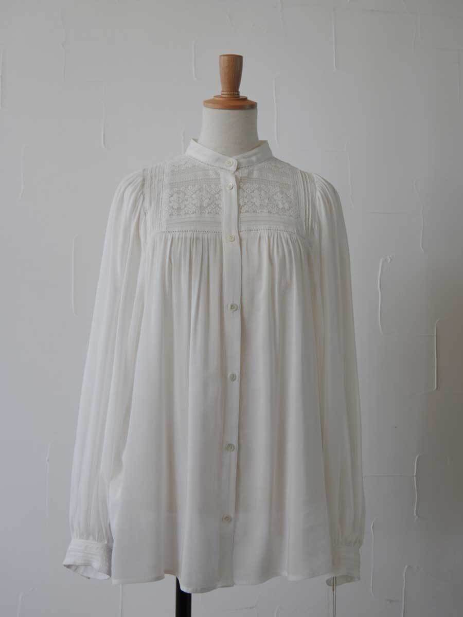 358. cafune カフネ レースギャザーブラウス(white、black) (15910)