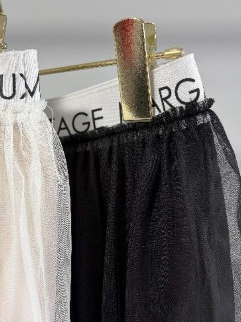 ウエストゴム部分にMARGAUX VINTAGEの文字が入ったチュールスカート。