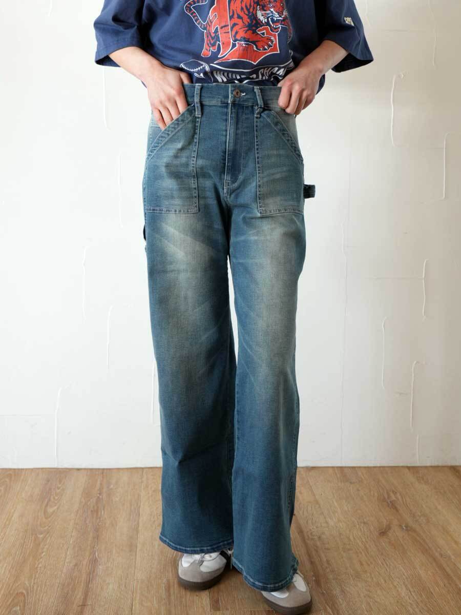 397. café de INDIGO MAGOTS ワイドベーカー デニムパンツ(A1ブルー)(MIE106PCE)