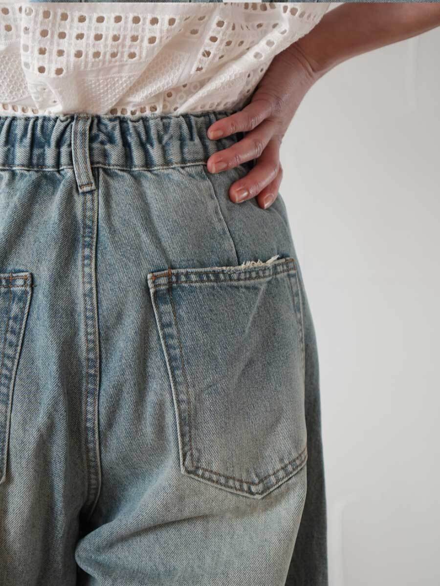 428. LePujuセレクト 切替コクーンワイドデニムパンツ(ブルー) 77636