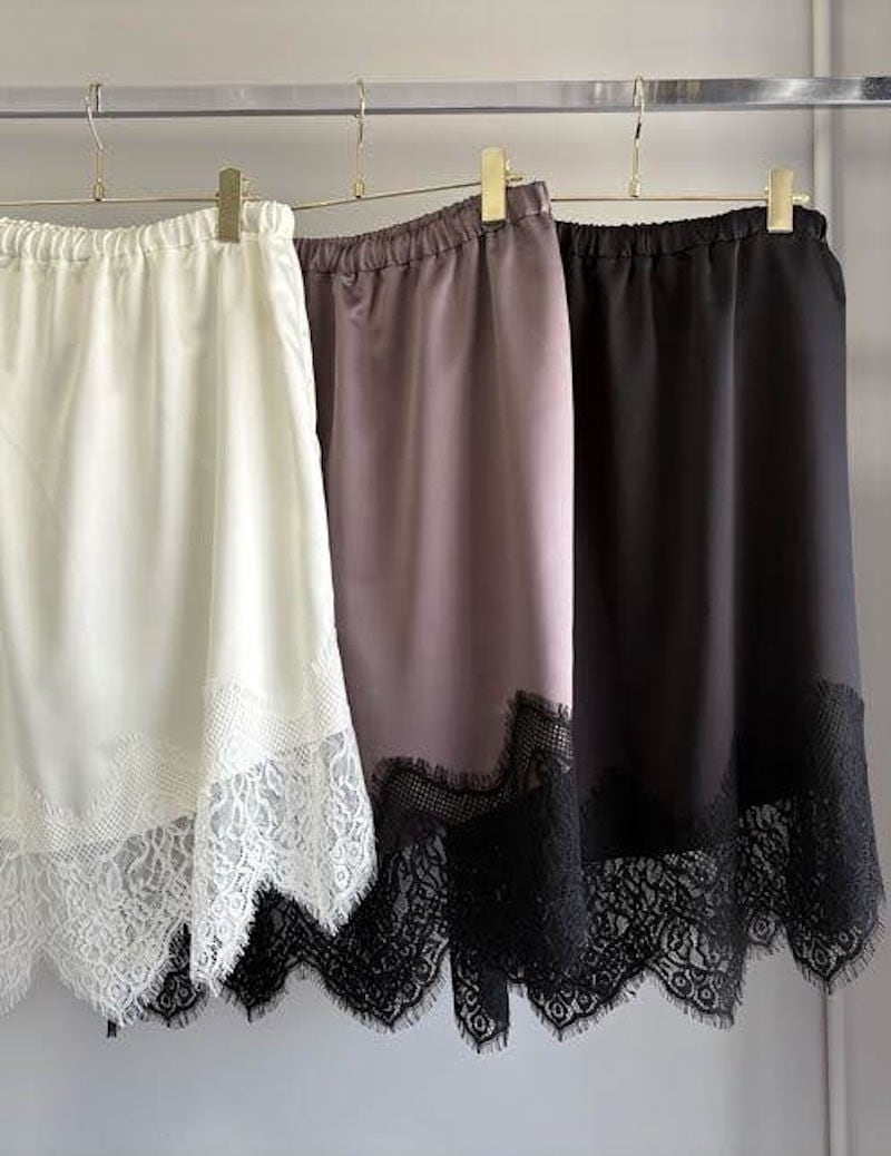 【7月入荷次第お届けのご予約】524.MARGAUX VINTAGE / マルゴー ヘムレーススカート(オフホワイト/ブラウン/ブラック) MG SK-26097-A